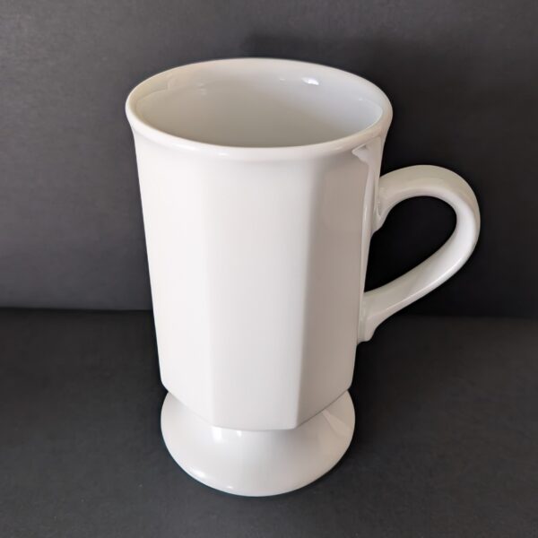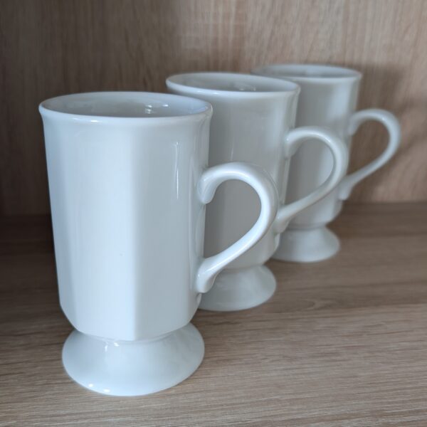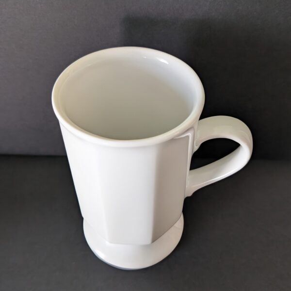 Die Tassen bestechen durch ihr zeitloses, elegantes Design in Reinweiß. Besonderes Merkmal ist die achteckige (facettierte) Form und der stilvolle Standfuß, die den Tassen eine edle Optik verleihen.